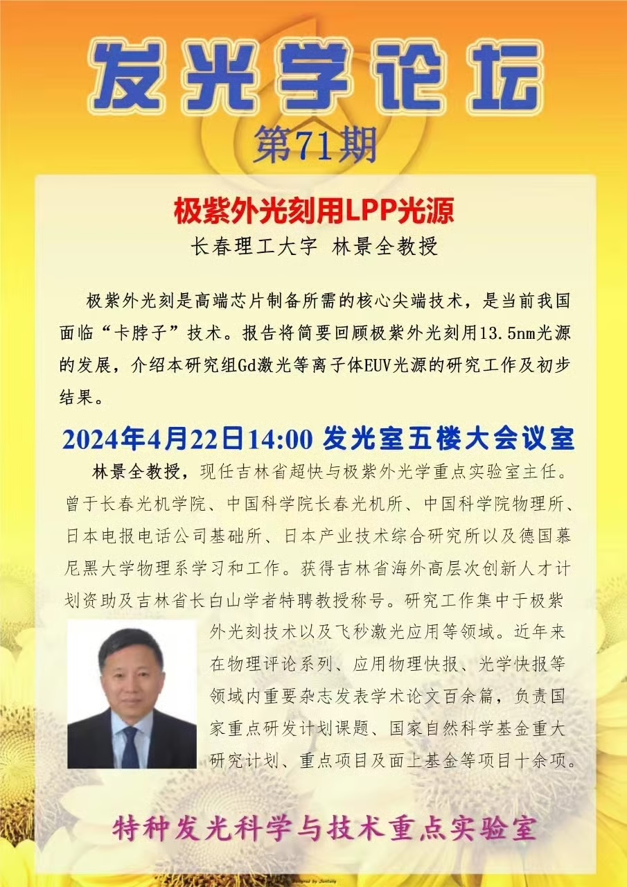 发光学论坛第71期:极紫外光刻用LPP光源