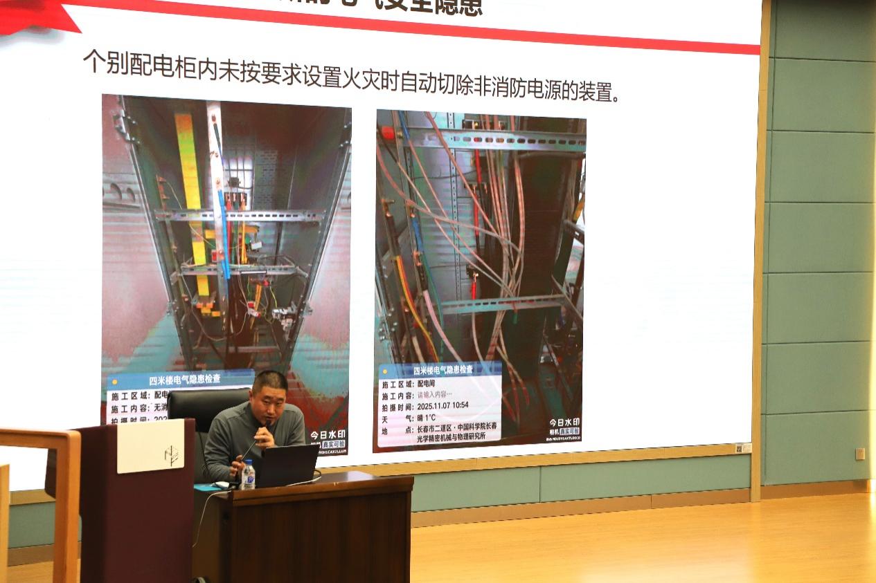 本次培训共有安全管理人员、各部门安全员、大体积/大功率/高风险设备安全负责人、条件保障处相关岗位人员,以及物业公司配电人员等90余人参加。会议由党委办公室主任方秀军主持。培训中,袁老师结合所内配电间、电井、实验室等典型场所中实际发现的电气安全隐患,进行了系统讲解,帮助大家识别身边潜在风险,并同步普及了相关电气专业知识。此外,他还分享了其他常见电气安全隐患类型,并就日常安全管理和规范用电操作提出了具体建议。