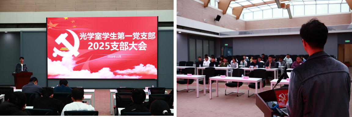 为严格落实 “三会一课” 制度,扎实推进党支部标准化规范化建设,全面总结 2025 年度党建工作成效,深入学习党的创新理论与科技创新重要精神,2025年12月19日下午,长春光机所光学室学生第一党支部在光学楼阳光报告厅召开党员大会。支部全体党员、入党积极分子参会,党支部书记刘斌主持会议。 会议在庄重严肃的氛围中拉开帷幕。首先举行新下室学生党员见面会环节,分享个人科研方向、入党初心及对支部生活的期待。老党员代表结合自身科研与支部工作经历,从理论学习、组织生活参与、科研协作等方面分享经验心得,表达了对新党员的欢迎与期许。现场互动热烈、氛围融洽,有效帮助新党员快速融入支部集体,进一步夯实了支部 “传帮带” 的优良传统,为支部注入新鲜活力。