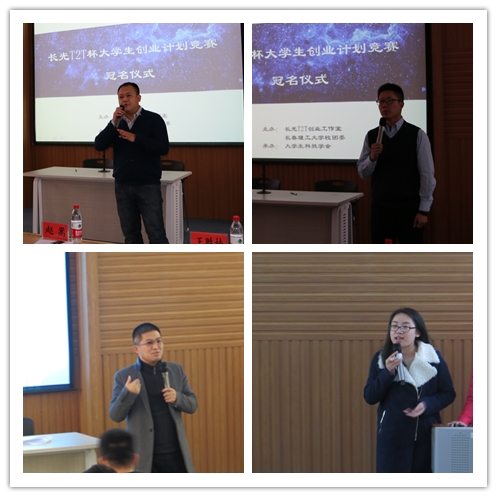 仪式上,长春理工大学校团委书记王超老师对与长光T2T创业工作室的合作表示热烈的欢迎,并希望通过合作为参赛团队提供更好的技术支持与专家指导,力争在大赛中有所突破,打通从校园到市场的转化模式;工作室总经理赵嵩对双方合作的方式进行了详细说明,希望以大赛为契机展开更多实质性的工作,实现共赢;工作室业务主管王胜楠介绍了创业工作室相关情况。