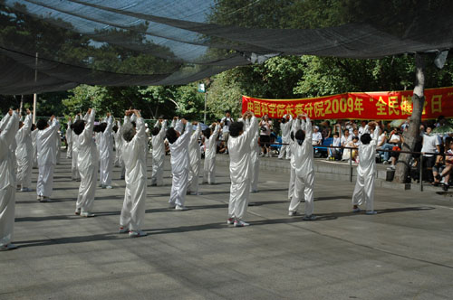 所离退休中心组织83名离退休职工表演了中华武术“八段锦”。他们良好的形象和表演水平不但赢得了喝彩,更展示了中华武术的博大精深及充满阳光的老年文化生活。大家赞许说,光机所老年朋友真正做到了“每天锻炼一小时,幸福生活一辈子”!