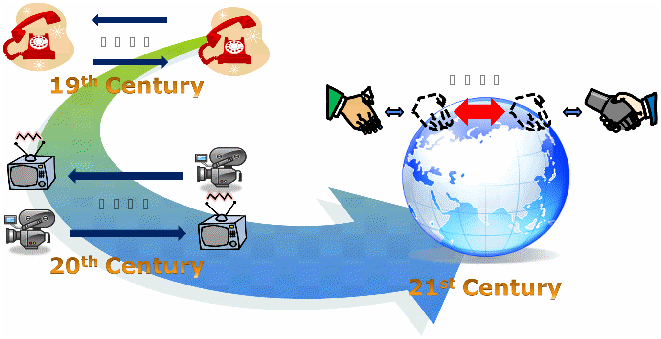 人类出于认识自然和改造自然的需要使各种人类感官信息的通信成为现实。如图1所示。人类在19 世纪发明了电话,从此实现了声音信息的通信。在20 世纪,人类使用摄像机和电视,使视觉的通信成为现实。电话和电视的问世极大地扩展了人类认识自然的活动范围,加速了人类社会的发展。而到了21 世纪,人类还应可以利用机器人实现触觉的传递,使人类对于世界的认识和改造的活动范围不再受到地理距离的限制。