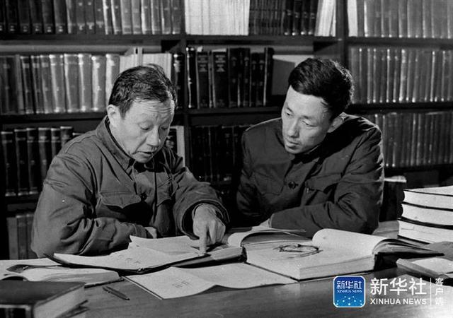 ↑这是王大珩(左)与他的学生蒋筑英在研究工作(资料照片)。新华社发