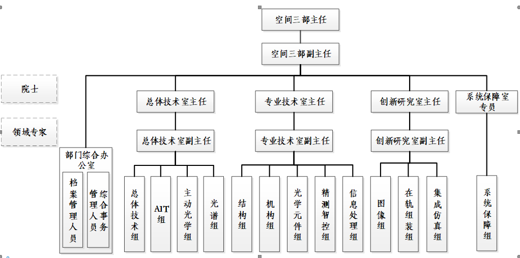空间三部由总体技术室、专业技术室、创新研究室、系统保障室及部门综合办公室组成,具体行政组织机构如图1所示。