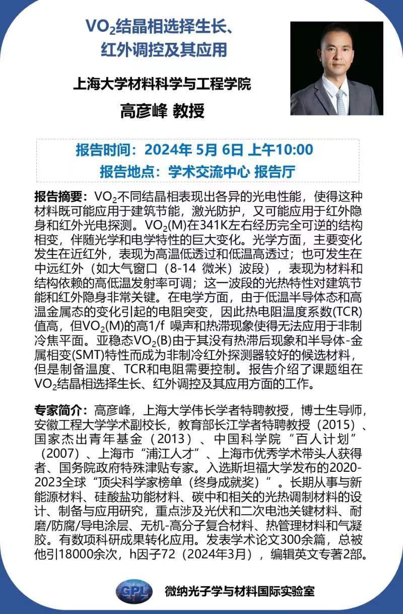 上一篇:第73期发光学论坛——《制备薄膜材料的等离子体和离子束技术》