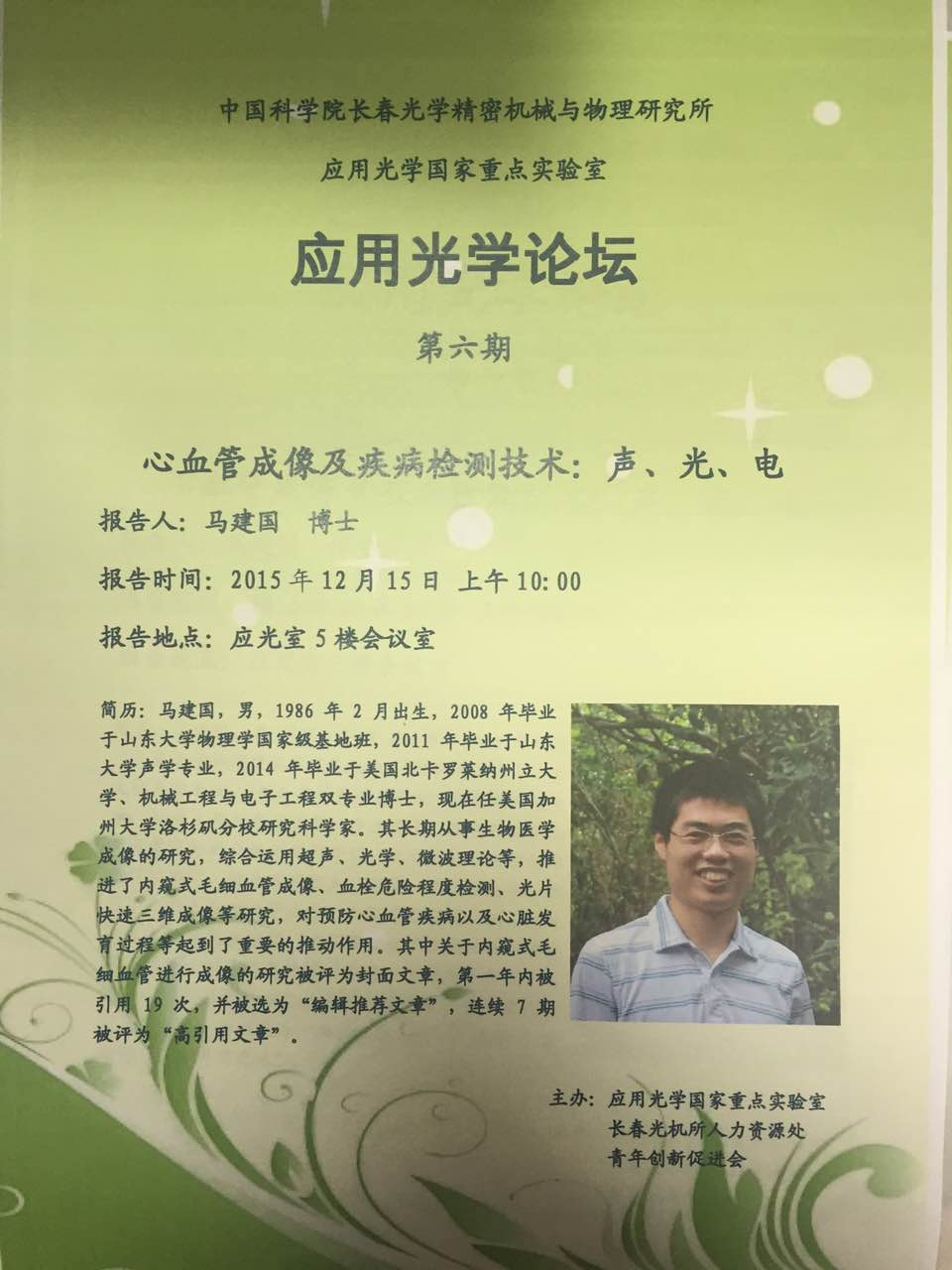 应用光学论坛第6期--心血管成像及疾病检测技术:声、光、电
