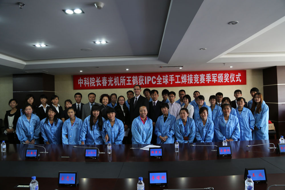 9月11日上午九点,国际电子工业联接协会(IPC)总裁John Mitchell一行专程来到长春光机所,为日前夺得IPC全球手工焊接竞赛季军的电装工艺中心员工王鹤颁奖。