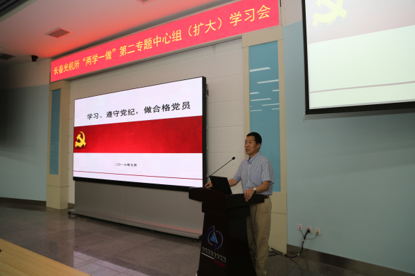 7月8日下午,长春光机所“两学一做”第二专题中心组扩大学习会在学术报告厅举行。所党委委员、纪委委员、各基层党支部书记、处级党员干部参加了学习。会议由党委书记马明亚主持。