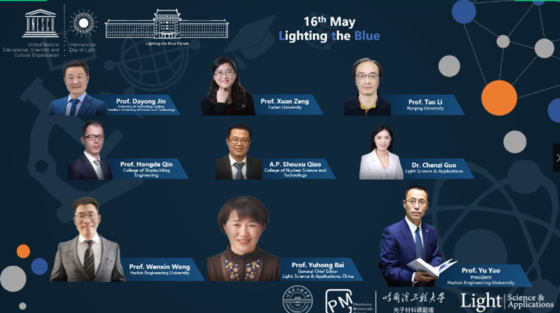 2020年5月16日-17日,由哈尔滨工程大学物理与光电工程学院光子材料课题组(Photonic Materials Group,PMG)与国际顶尖期刊《Light: Science & Applications》联手举办的“点亮海蓝”国际学术论坛在腾讯会议、腾讯直播、哔哩哔哩直播等网络平台盛大召开。