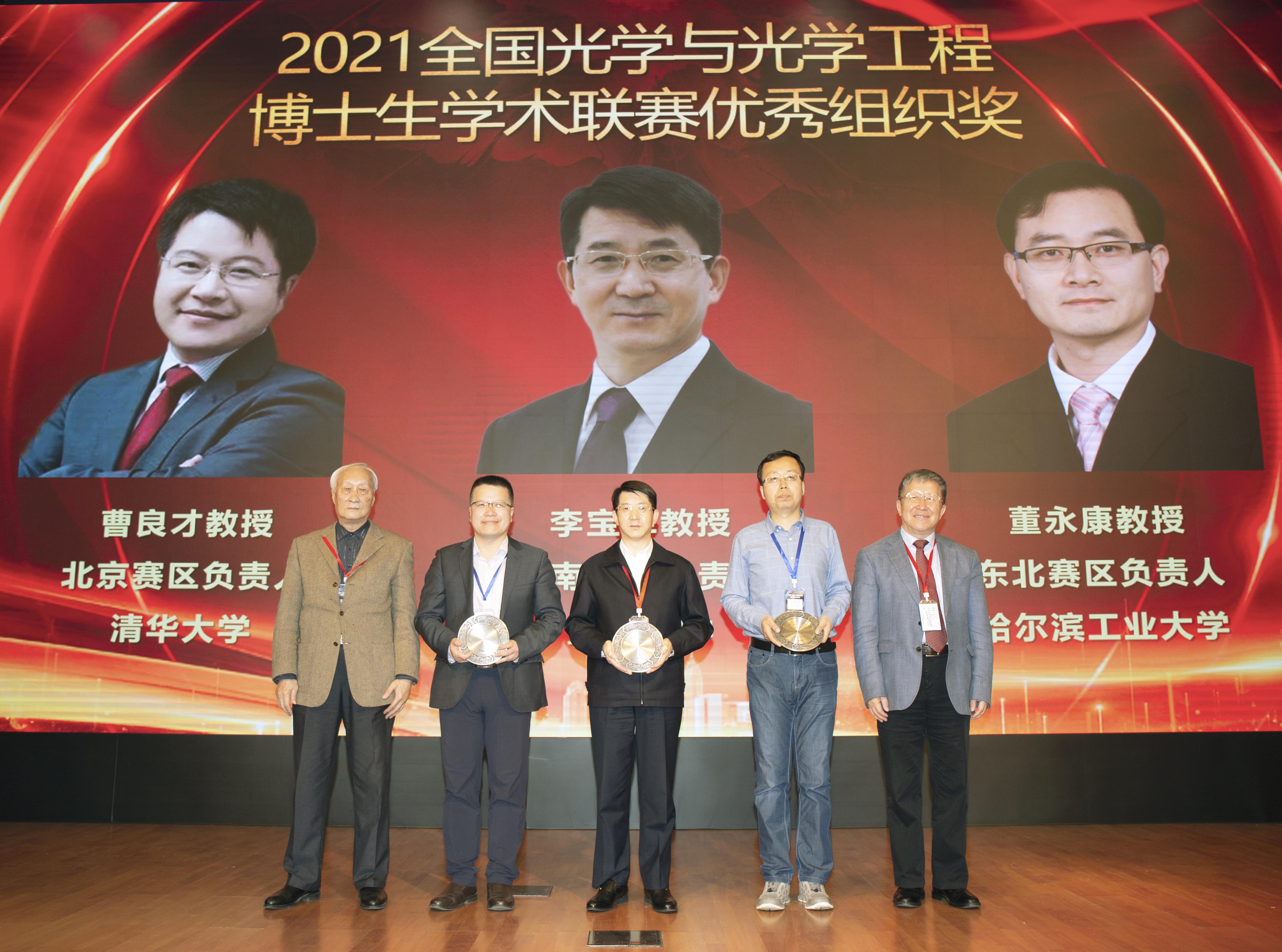 贾平所长、光学学会秘书长刘旭教授、国家天文台王森研究员为大珩奖-学生光学奖获得者颁奖