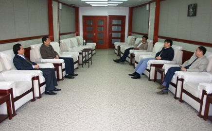 ,长春分院院长张洪杰、党组书记薛传海来所为十七大党代表宣明所长送行。