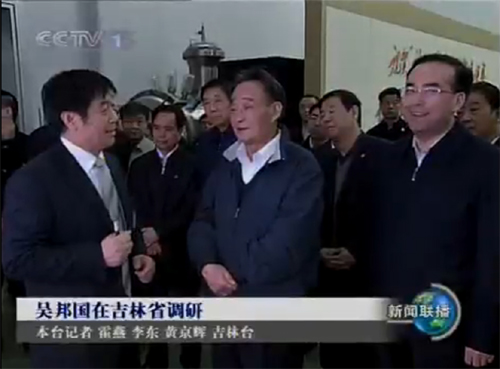 4月12日至16日,中共中央政治局常委、全国人大常委会委员长吴邦国在吉林省调研。他先后来到长春、吉林等地,走进企业车间、科研院所、高等院校和棚户改造区,亲切看望企业职工、科研人员、高校师生和回迁居民,就加快转变经济发展方式、着力提高自主创新能力、切实保障和改善民生等工作,与大家进行深入探讨。