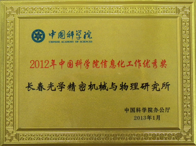 近日,《2012年中国科学院信息化评估报告》由中国科学院信息化工作领导小组办公室发布。中科院长春光机所信息化评估以优异成绩创佳绩,同时荣获信息化工作优秀奖和信息化工作进步奖两项荣誉。