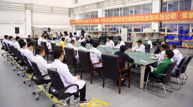 巴音朝鲁先后来到长春旭阳工业(集团)股份有限公司、长春长光辰芯光电技术有限公司和长光卫星技术有限公司,进车间、看展品、听汇报,详细了解基层党员和企业干部职工学习党的十九大精神和企业生产经营情况,并与党员职工代表进行座谈,宣讲党的十九大精神。