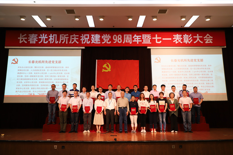 在中科院长春光机所举办的“庆祝建党98周年暨七一表彰大会”上,长光华大公司党支部被评为“2019年度长春光机所先进党支部”,总经理助理杨旺被评为“2019年度长春分院优秀共产党员”及“2019年度长春光机所优秀共产党员”,青年员工苏静在会上参加了新党员宣誓仪式,正式成为了一名中共党员。标志着长光华大公司党支部在基层党组织建设、思想建设等方面取得了优异的成绩,得到了上级党组织的高度评价。