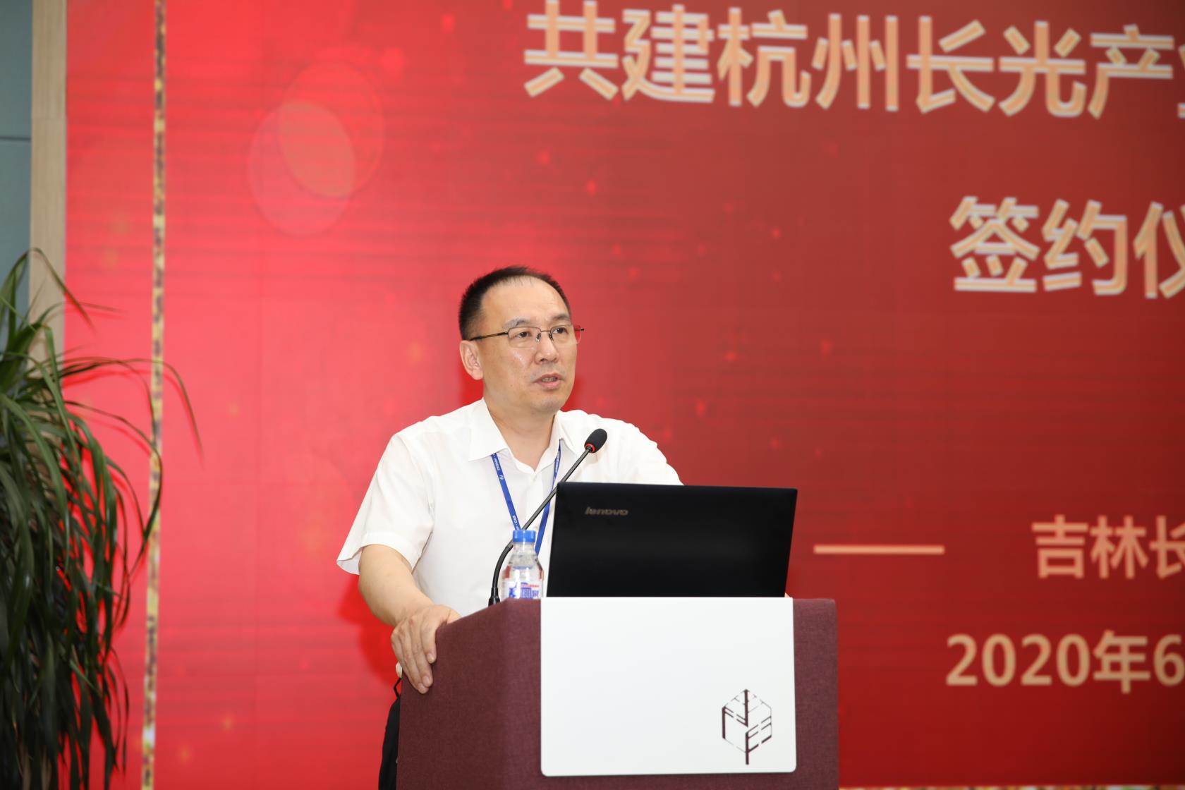 签约仪式在长春光机所学术交流中心报告厅内举行。长春光机所所长贾平,杭州高新区党工委、滨江区委书记王敏出席仪式并发表讲话,长春光机所所长助理孙守红介绍了长春光机所成果转化及产业发展情况。