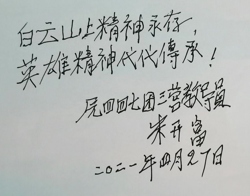 访谈结束后,朱老为支部党员题词:“白云山上精神永存,英雄精神代代传承!”