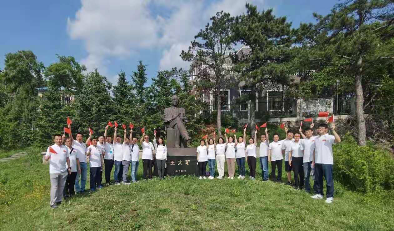 火红六月风清日暖,大珩纪念园绿树成荫。在大珩先生铜像前,社员向大珩先生鞠躬致敬,表达对王大珩先生的深切缅怀和敬意,加深了对老一辈科学家革命年代的红色记忆。