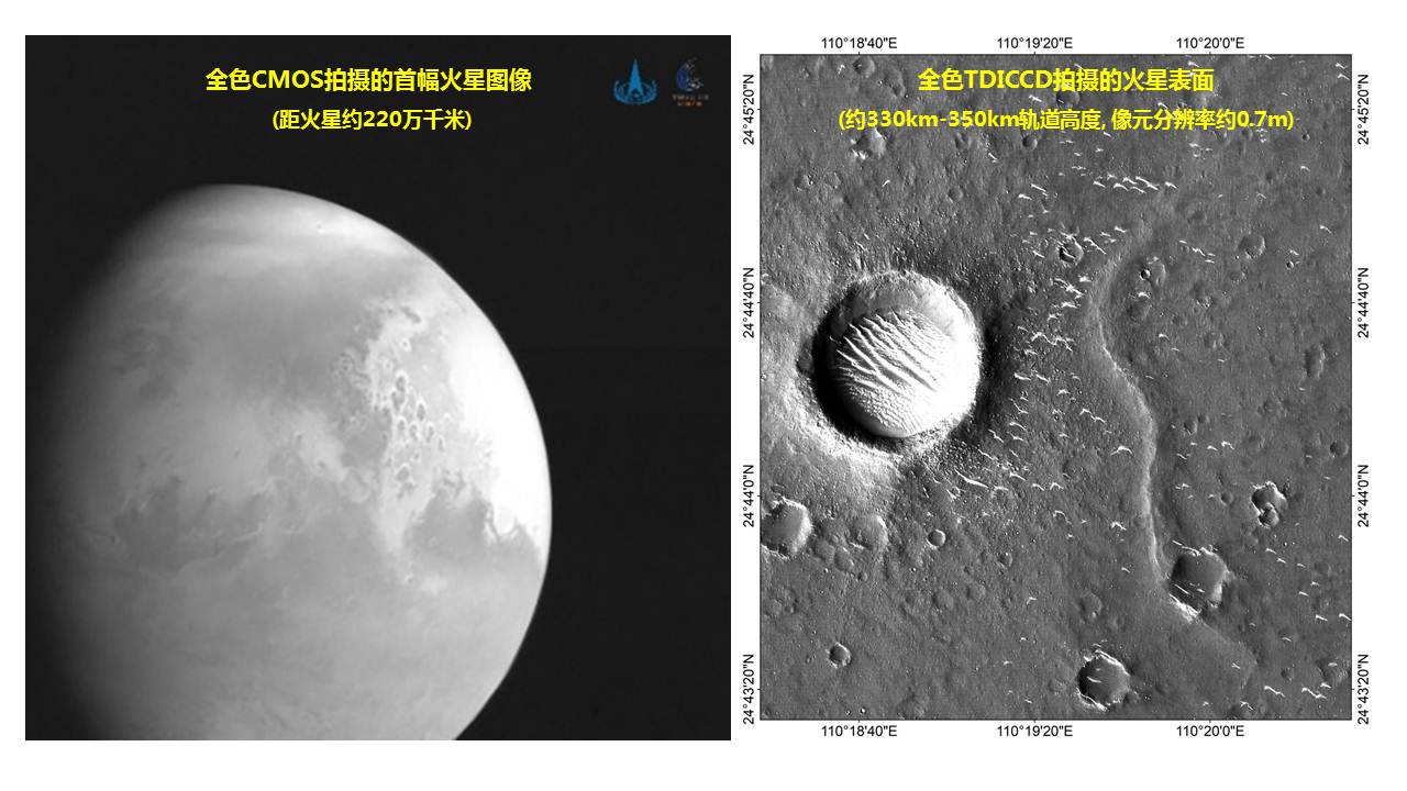 “天问一号”高分辨率相机由中科院长春光机所研制,已成功获取了我国首幅火星图像、0.6米分辨率着陆区以及巡视器与火星车周边区域等高清图像,相机为我国火星探测着陆点的确定以及“祝融号”行走路径的规划提供了强有力的数据支持,其图像数据将为科学家开展火星科学研究提供重要依据。