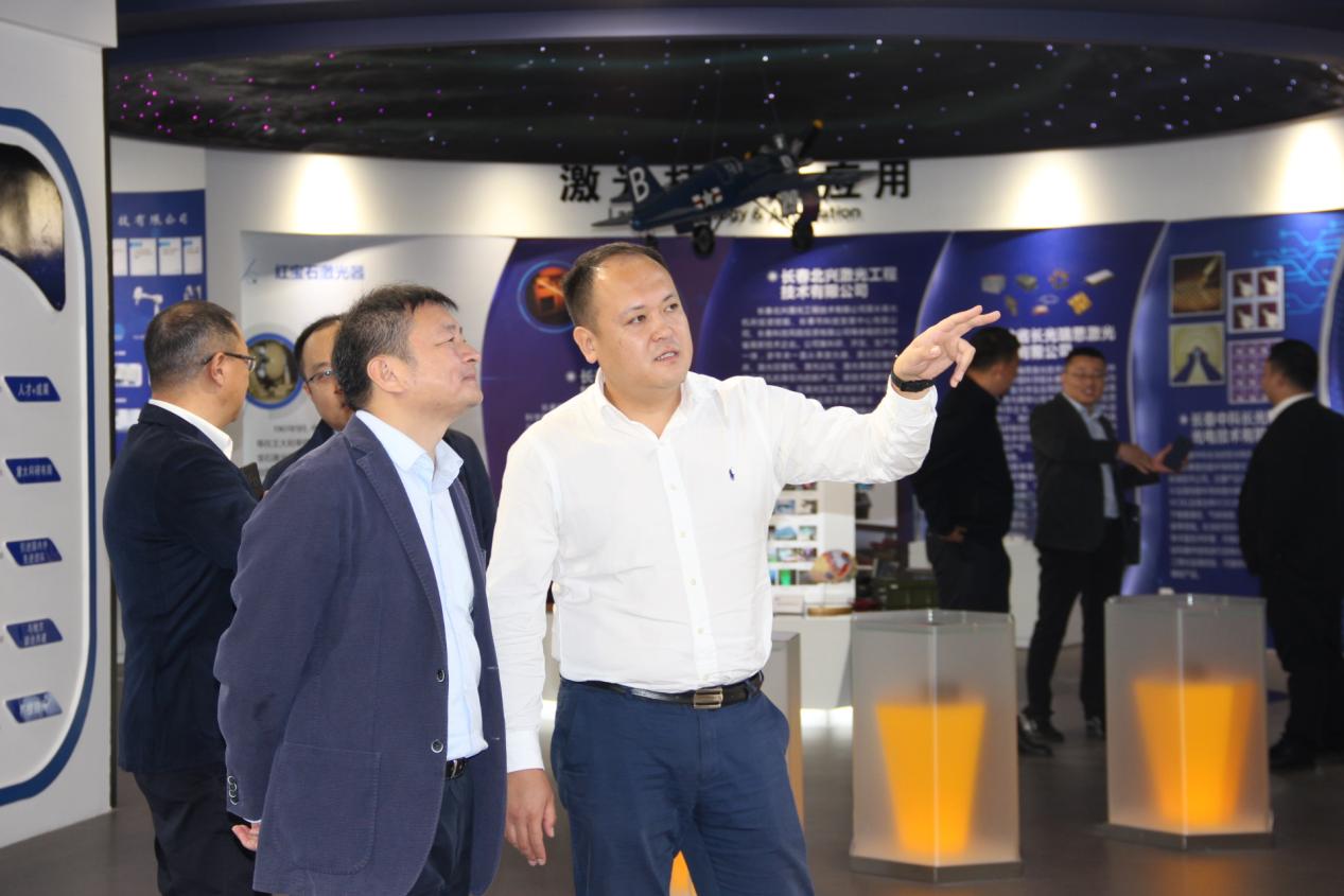 王辉一行首先参观了长光集团产业展厅,认真听取了赵嵩关于长春光机所秉承以科技创新为核心,研、产、学并举发展理念,在科技创新、军民融合、产业发展、平台建设等方面的突出成果与贡献,以及光电子孵化器重点围绕航空航天信息、激光技术及应用、核心元器件与材料、智能制造与装备、半导体显示照明、人工智能、医疗与生命科学等七大产业领域打造产业集群的详细汇报。