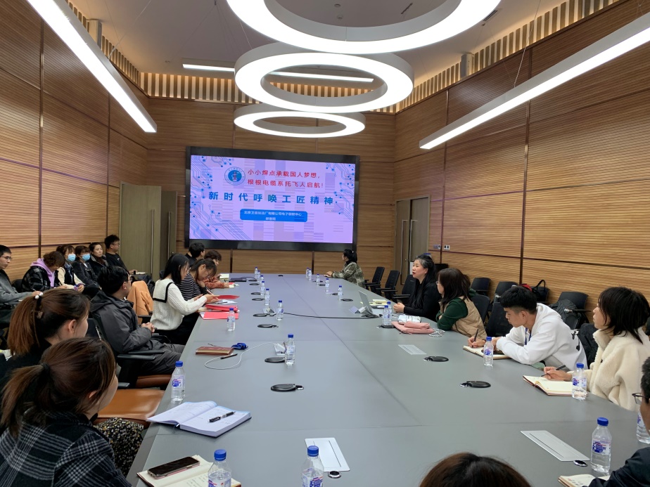 签字仪式结束后,参会人员认真聆听了由北京卫星制造厂有限公司电子装联中心的全国技术能手、中华技能大奖获得者郝春雨作的《新时代呼唤工匠精神》主题报告,郝春雨结合自身从事航天一线电子装联工作32年的经验点滴,向大家讲述了“敬业、精益、专注、创新”的工匠精神内涵,她精湛的技艺和爱岗敬业精神深深地打动了大家,引起了广泛共鸣。报告结束后,双方还就大家感兴趣的工艺技术问题进行了交流研讨。
