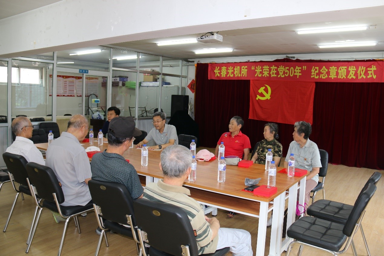 8月18日下午,长春光机所党委在离退中心举行2022年度“光荣在党50年”纪念章颁发仪式,所党委副书记、纪委书记孙焕为8位党龄50周年的老党员颁发了“光荣在党50年”纪念章和慰问金。颁发仪式由离退中心主任韩文斌主持。