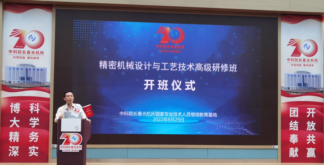 由中国科学院人事局和吉林省人社厅共同支持,中科院长春光机所国家专业技术人员继续教育基地承办的精密机械设计与工艺技术高级研修班于8月29日-31日在长春举办。来自13个省市企业、高校和科研院所等32家单位的110余位学员参加培训。吉林省人社厅专业技术人员管理处副处长曲立国出席开班仪式,长春光机所人力资源处处长尚阳出席并致辞。
