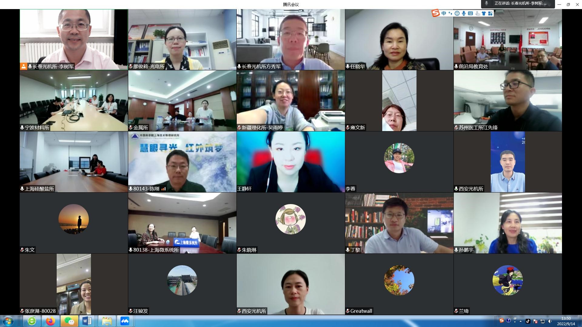 9月14日,2022年度中国学位与研究所教育学会科研机构研究生教育工作委员会高技术一组业务研讨会在线上召开。中国科学院前沿科学与教育局教育处及中国科学院系统部分研究所教育管理干部80余人出席本次会议。