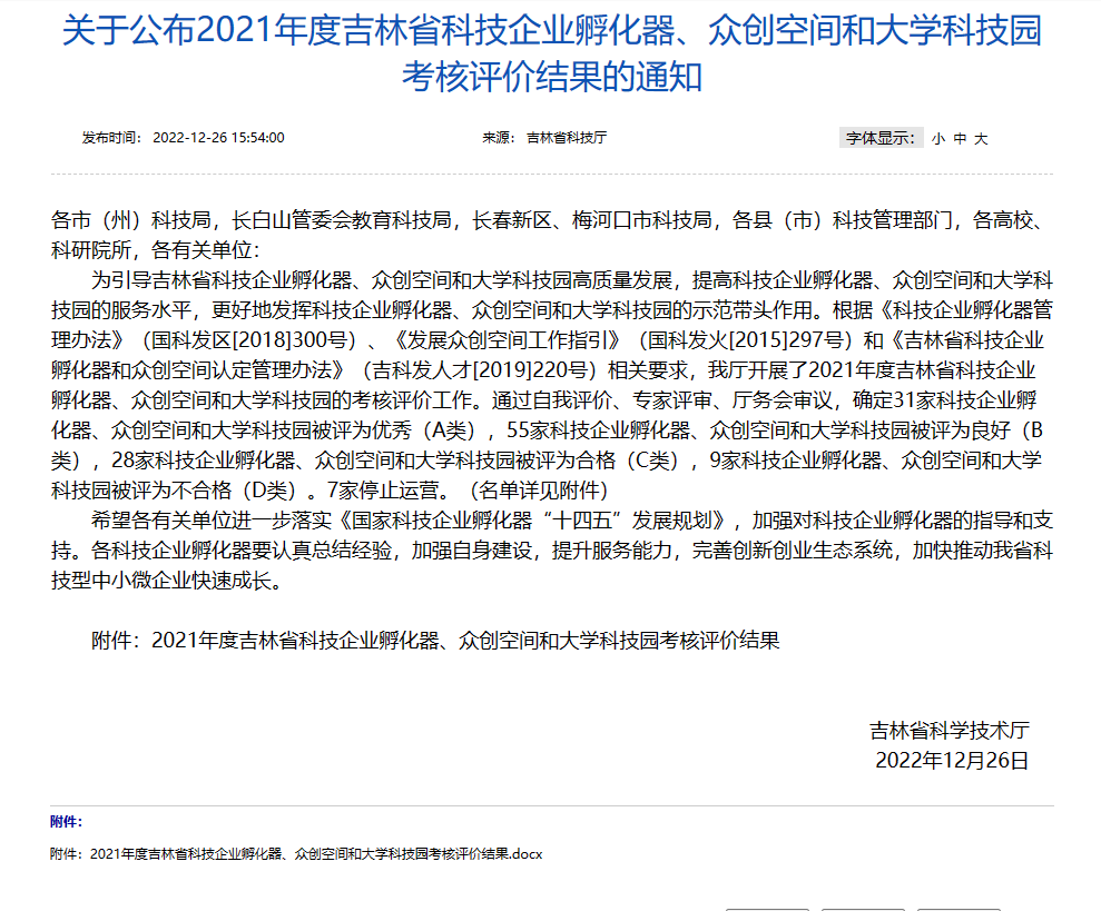近日,科技部火炬中心、吉林省科学技术厅分别公布了国家级科技企业孵化器、吉林省科技企业孵化器2021年度评价结果,吉林省光电子产业孵化器(以下简称:孵化器)均获评“优秀A级”,这无疑是对孵化器一年来工作的极大肯定,也彰显了孵化器在光电子信息产业这片创业沃土上所焕发的实力。