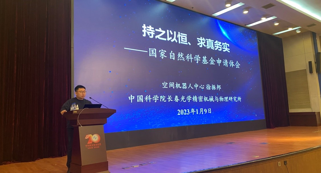 随后,空间机器人中心徐振邦研究员作了题为《持之以恒,求真务实—国家自然科学基金申请心得体会》的报告,他结合自身科研经历,从为什么写基金到如何写好基金进行了全面报告。并以青年基金申请过程为例,围绕如何凝练科学问题、总结创新点、强化可行性分析与研究基础等几方面分享了写作经验和心得体会。报告深入浅出,给予广大科研人员很好的建议和启发。