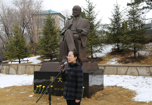 仪式最后,长春光机所综合办副主任王晓慧发表讲话。讲话回顾了王大珩先生为祖国的科学事业鞠躬尽瘁,无私奉献的一生,表达了长春光机所全体职工及学生对王老的怀念和敬意之情,感谢先生作为长春光机所的缔造者、首任所长为长春光机所的发展奠定的坚实基础,更希望大珩先生渊博的学问、深邃的思想、卓越的见识、宽广的胸襟、务实的精神和儒雅谦和的作风能够深深地感染着每个长光人,同时希望新一代的长春光机所广大科技工作者和青年学子们能够在王大珩先生不朽精神与光辉业迹的感召下,秉承“尽瘁报国、博大精专、求实创新、虚怀若谷”的高尚精神,甘于奉献、开拓创新、奋力前行,为长春光机所的新一轮改革发展、为祖国的繁荣富强,做出积极的贡献。
