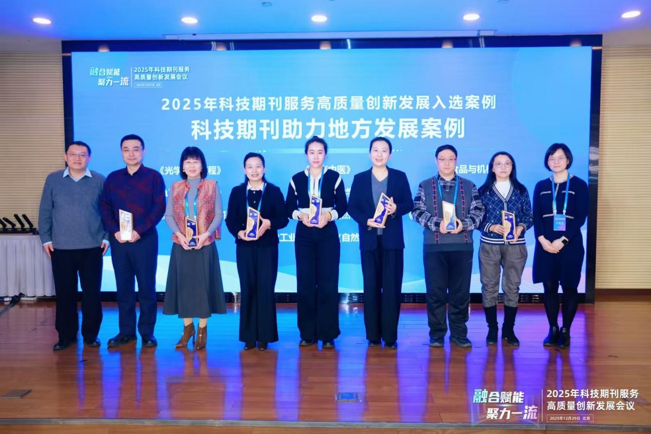 2025年12月29日,由北京市科学技术协会指导、中国高校科技期刊研究会主办的“融合赋能,聚力一流:2025年科技期刊服务高质量创新发展会议”在北京隆重召开。在此次行业盛会上,中国科学院长春光机所Light学术出版中心表现亮眼,申报的5项2025年科技期刊服务高质量创新发展案例全部入选。具体包括:《Light : Science & Applications》入选科技期刊驱动产业创新发展案例(全国入选12例);《eLight》入选科技期刊支撑重大科技创新成果案例(全国入选13例);《Light : Advanced Manufacturing》入选科技期刊国际影响力提升案例(全国入选19例);《光学精密工程》入选科技期刊助力地方发展案例(全国入选11例);Light中心主任张莹入选科技期刊人才建设案例(全国入选9例)。