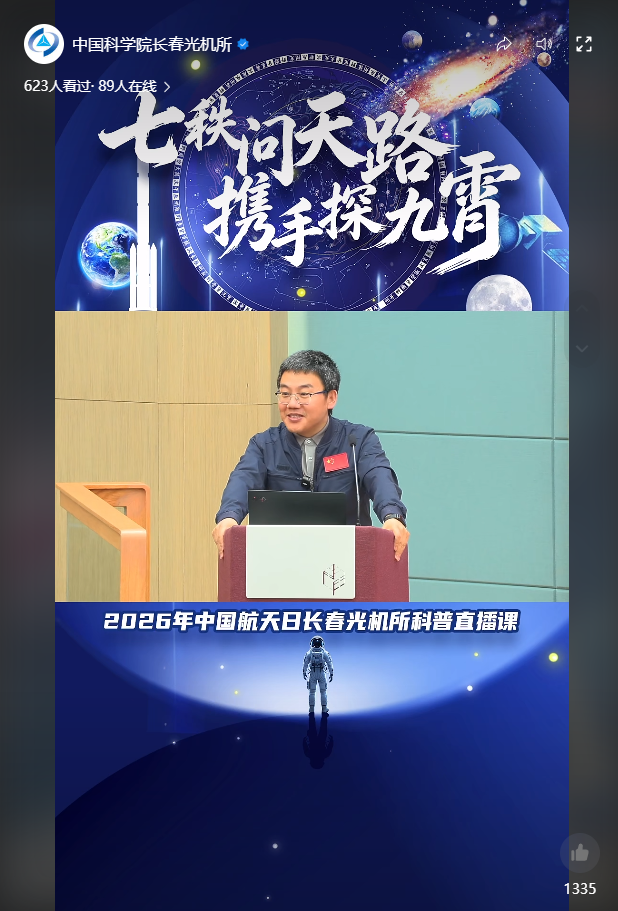 4月24日,中国科学院长春光机所围绕中国航天日开展主题科普活动。本次活动采用线上+线下相结合的方式,既面向社会公众开放,又在所官方视频号进行同步直播,共计观看人数达1000余人次。活动在兼顾科普覆盖面的同时也提升了互动体验感,旨在传承航天精神、普及航天知识,激发公众尤其是青少年对航天科技的探索热情,向社会传递中国航天的发展成果与使命担当。