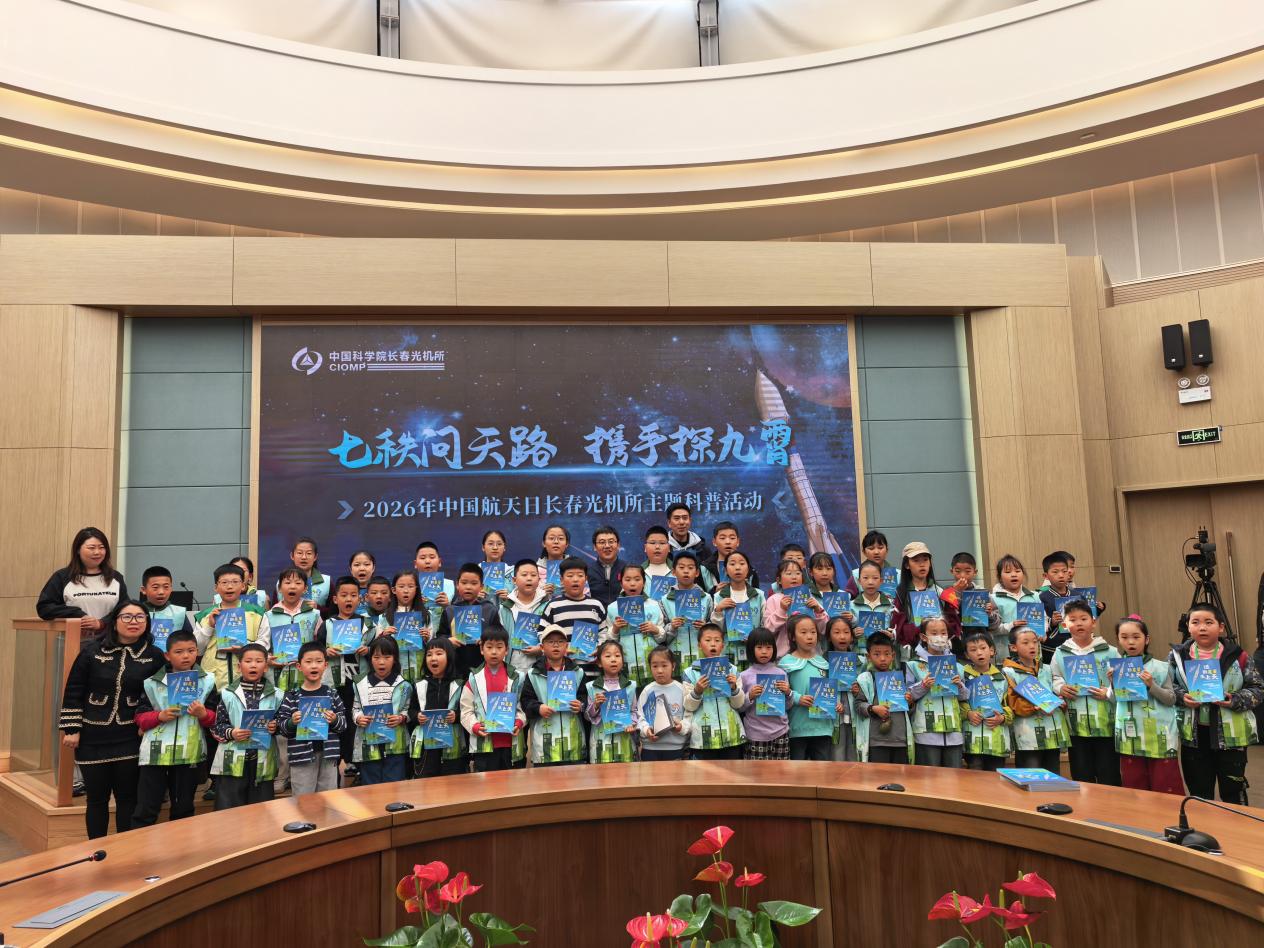 活动尾声,在工作人员组织下,同学们有序走上台前,与黄煜老师共同合影留念。现场气氛轻松而热烈,每一位参与的孩子都领取到一本科普读物《造颗星星送上天》,作为此次科学之旅的延伸载体。这不仅是一份纪念,更是一种持续探索的引导。未来长春光机所将继续以中国航天日为契机,持续开展形式多样、内容丰富的科普活动,让航天精神深入人心,为国家航天事业培养更多后备力量,助力中国航天事业高质量发展。