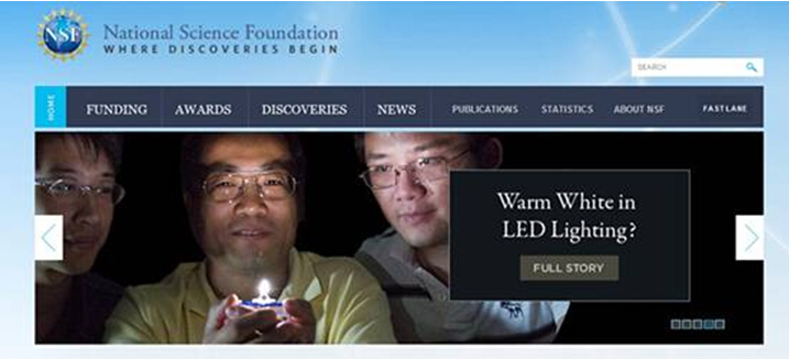 图为获奖文章发表后在美国国家自然科学基金网站的头版报道