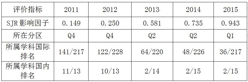 表1《中国光学》SJR主要评价指标(2011-2015)