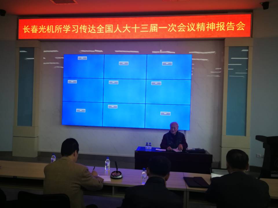 4月4日下午,长春光机所学习传达十三届全国人大一次会议精神报告会在研发大厦一楼学术报告厅举行。出席十三届全国人大一次会议的全国人大代表王家骐院士就主要会议精神和感想体会作了一场精彩的报告。所长贾平,党委书记马明亚,副所长宋志义、张学军、张涛、金宏,所长助理陈俊江、孙守红以及本所各基层党支部书记,本所各级人大代表、政协委员、民主党派负责人80余人参加了报告会。会议由党委办公室主任王晓慧主持。