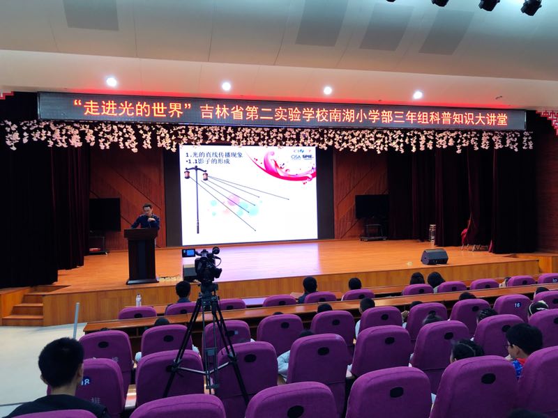 5月9日,长春光机所科普志愿者协会来到吉林省第二实验学校南湖小学部,为三年组全体500余名同学带来了一场“走进光的世界”主题科普讲座,讲座由科普志愿者协会负责人周立勋主讲。
