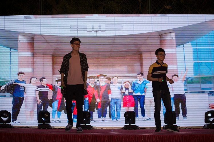 “只想靠两手,向理想挥手。问句天几高,心中志比天更高。”为梦想拼搏,他们《不再犹豫》,坚定的踏入人生新的章节。这段由两位歌手带来的歌曲更是将全场的气氛带向了高潮。2016级的三名女生带来的火辣激情的爵士舞《Take me back》也让现场观众踏着节拍一起舞动了起来。