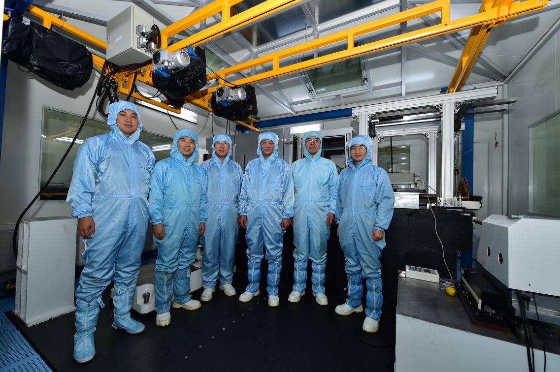 巴音贺希格(右二)与大光栅研制团队在一起