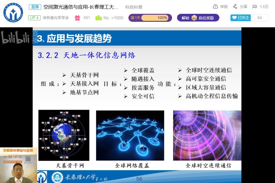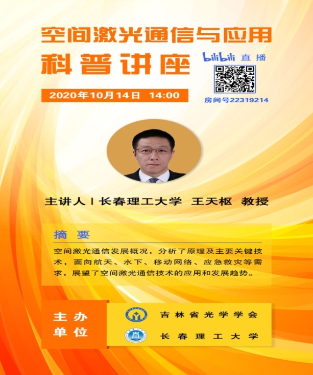 以普及光学知识,繁荣光学技术为主旨,为了汇聚省内光学科技工作者,促进光学前沿技术的传播与交流,推动光科学技术的应用与发展,吉林省光学学会策划了“集光荟”系列科普讲座活动。近日,吉林省光学学会携手长春理工大学成功举办了第三期“集光荟”科普讲座,长春理工大学王天枢教授以“空间激光通信与应用” 为题,生动地介绍了空间激光通信的原理、系统组成和信息传递方式,通过网络平台与光学科技从业者、爱好者、学者和广大群众进行了在线科普、学习、交流与互动。本次科普讲座得到了广大光学爱好者的热烈关注与支持, 1.6万余名光科学工作者和爱好者参与了在线活动。
