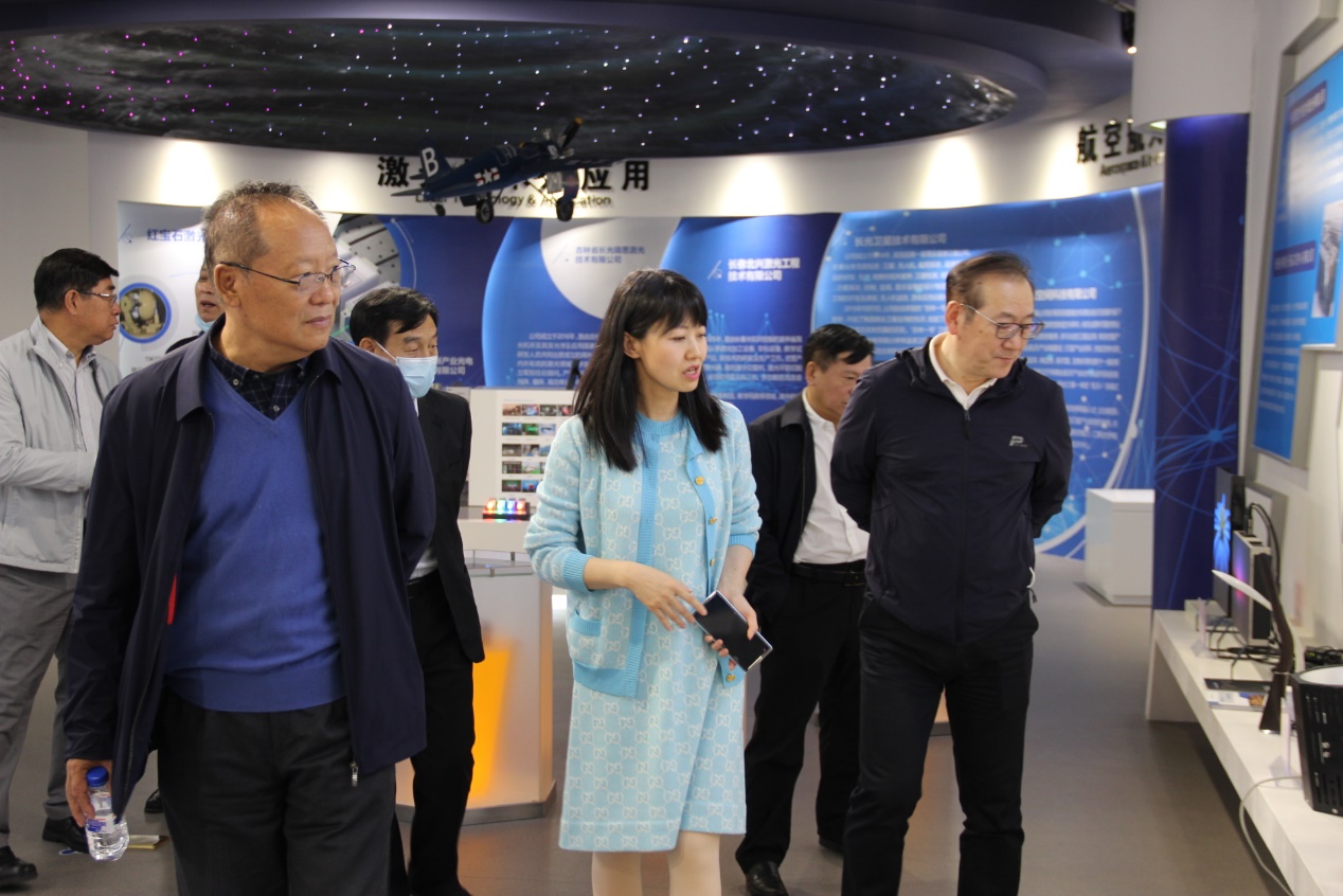 在长光产业展示中心,高士红对孵化器重点围绕航空航天信息、激光技术及应用、核心元器件与材料、智能制造与装备、半导体显示照明、人工智能、医疗与生命科学等七大产业领域打造产业集群的情况做了详细汇报。