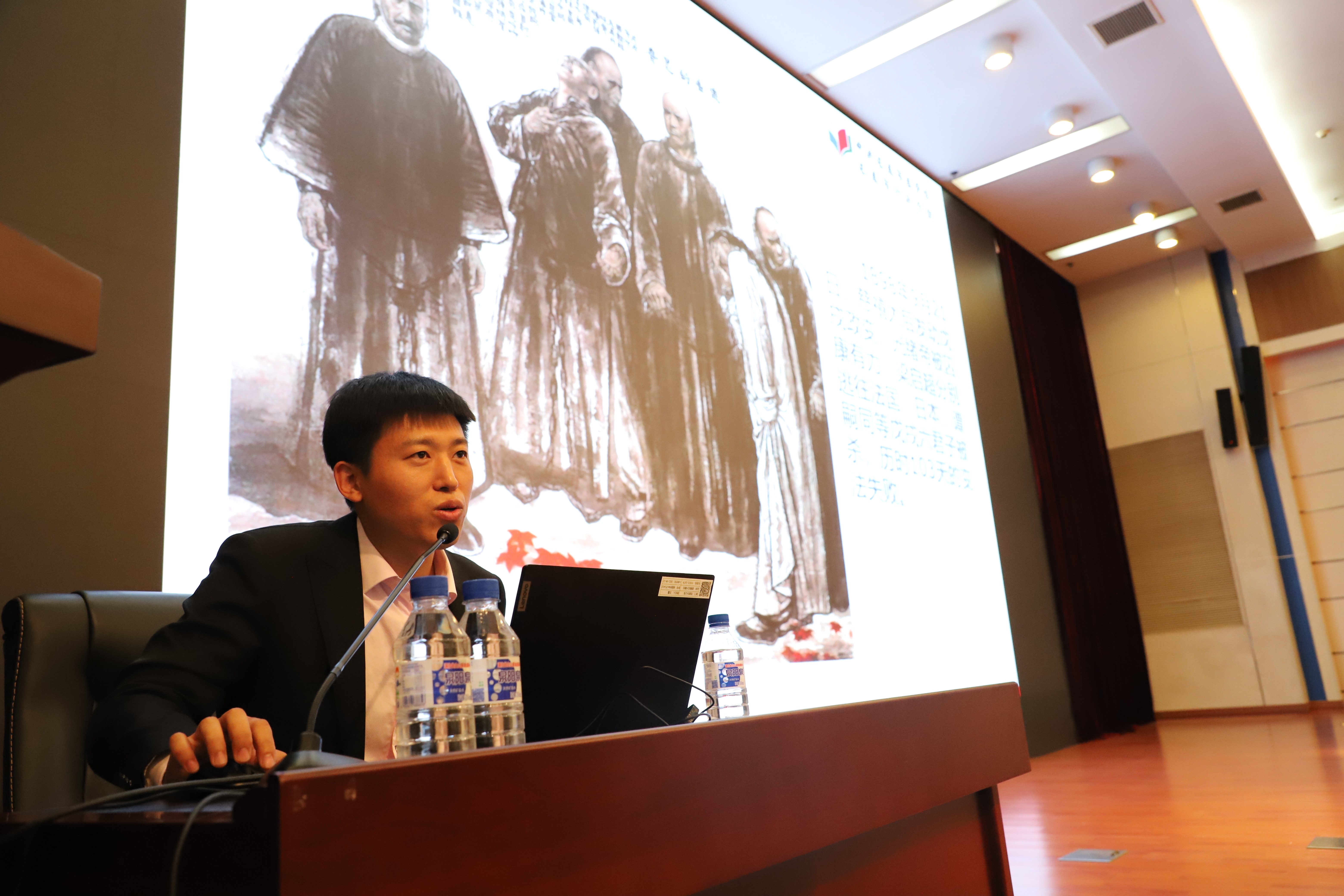 会上,闫泓多博士讲述了1840年以来中国人民不屈的斗争历程与社会主义在中国的发展历史。为了挽救民族危亡,中国人民进行了艰苦卓绝的不懈奋斗和可歌可泣的英勇斗争。这其中既有抗击西方列强侵略的中国军民的浴血奋战,也有各阶层人士反对外来侵略掠夺、反对统治者剥削压迫的斗争、起义、风潮。这些运动虽然都打击了帝国主义和封建主义,促进了人民的觉醒,加速了封建统治的瓦解,但是,这些运动没有改变中国半殖民地半封建社会的性质,也没有结束中国人民的悲惨命运。正是在这时,马克思主义在中国的传播,让许多先进知识分子走上了信仰科学社会主义的道路,选择社会主义是近代中国历史发展的必然。报告中,闫泓多博士通过《药》《觉醒年代》等生动实例讲述了旧社会中国人民的思想认知,在长期实践中,中国共产党创造性地运用马克思主义关于社会革命和党的自我革命辩证统一的原理,在实践中积累了丰富的经验,推动了社会主义在中国不断迈向新阶段,进入新境界。