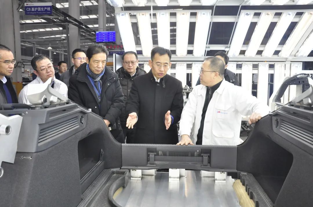 孙守红一行首先到长春旭阳佛吉亚毯业有限公司、长春佛吉亚旭阳汽车零部件技术研发有限公司实地参观了研发实验室的生产流程及自动焊接、化纤材料净化、高压水切等加工工艺,对旭阳集团的产品和企业研发能力表达了高度认可。