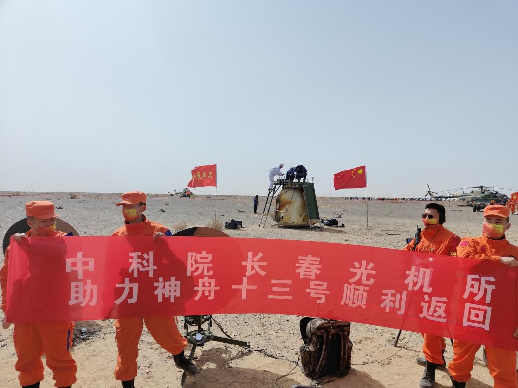 长春光机所研制的四型地面光电设备、两型机载光电设备等遥测装备对返回舱出黑障区、高空开伞、抛防热大底、着陆的全程实现空地一体化的无缝接力观测,为指挥、搜救保障提供了有力支撑。