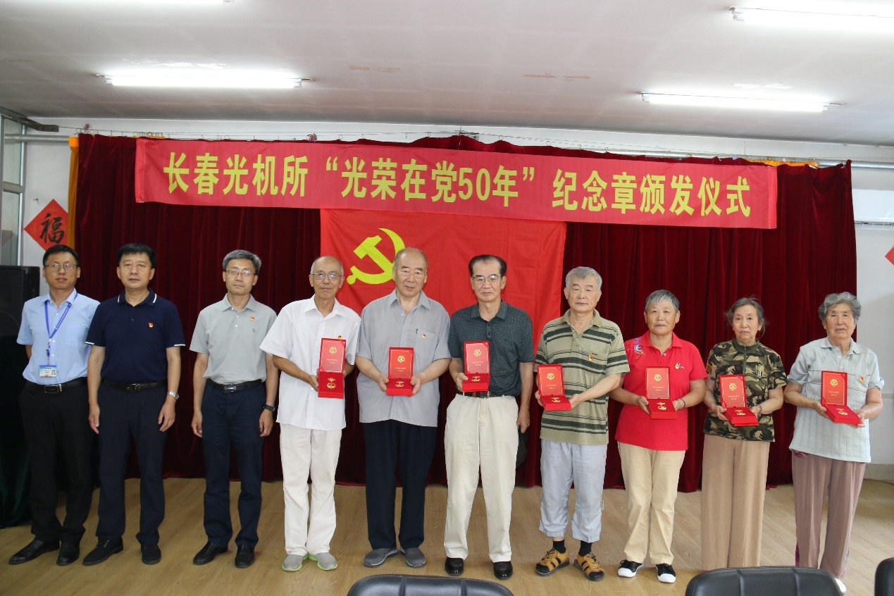 8月18日下午,长春光机所党委在离退中心举行2022年度“光荣在党50年”纪念章颁发仪式,所党委副书记、纪委书记孙焕为8位党龄50周年的老党员颁发了“光荣在党50年”纪念章和慰问金。颁发仪式由离退中心主任韩文斌主持。