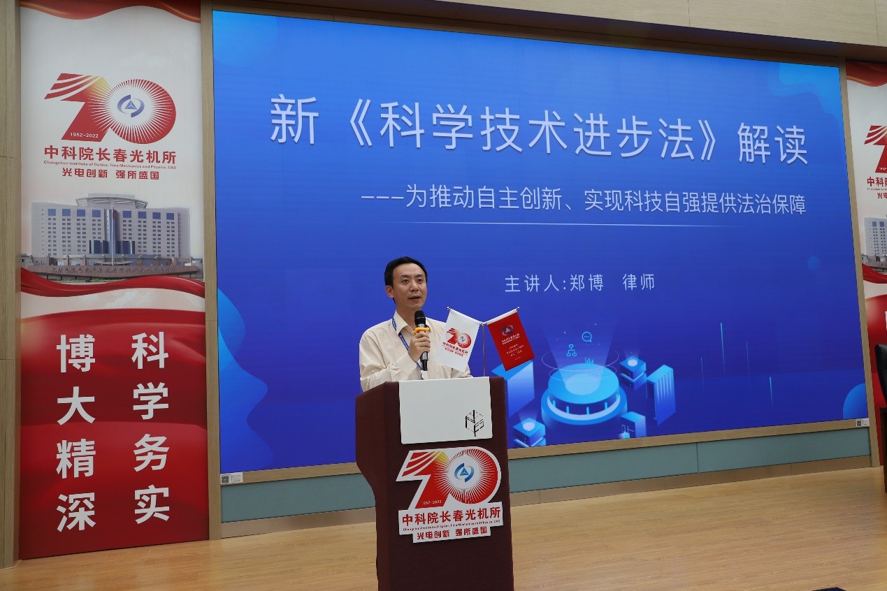 9月7日下午,长春光机所邀请北京盈科(长春)律师事务所股权高级合伙人、本所法律顾问郑博律师做客“长光大讲堂”,做主题为“新《科学技术进步法》解读--为推动自主创新、实现科技自强提供法治保障”的普法讲座。