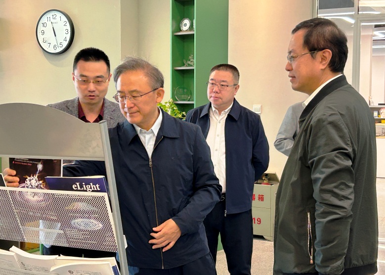 贾敬敦一行先后参观了长光华大智造测序设备有限公司、长光辰芯微电子股份有限公司、长光大器科技有限公司、研发大厦集中办公区、Light学术出版中心、发光学及应用国家重点实验室、国家光栅制造与应用工程技术中心、中国科学院天基动态快速光学成像技术重点实验室、中国科学院空间光学系统在轨制造与集成重点实验室、光电探测技术研究部、光学系统先进制造全国重点实验室(筹)、国家“十三五”科教基础设施-大口径空间光学载荷综合环模试验平台,详细了解了长春光机所的科研平台建设、科技成果转化、企业运营模式等情况。贾敬敦对本所取得的成绩给予充分肯定,并就产学研融通创新、高层次人才引育等方面提出了建设性意见。