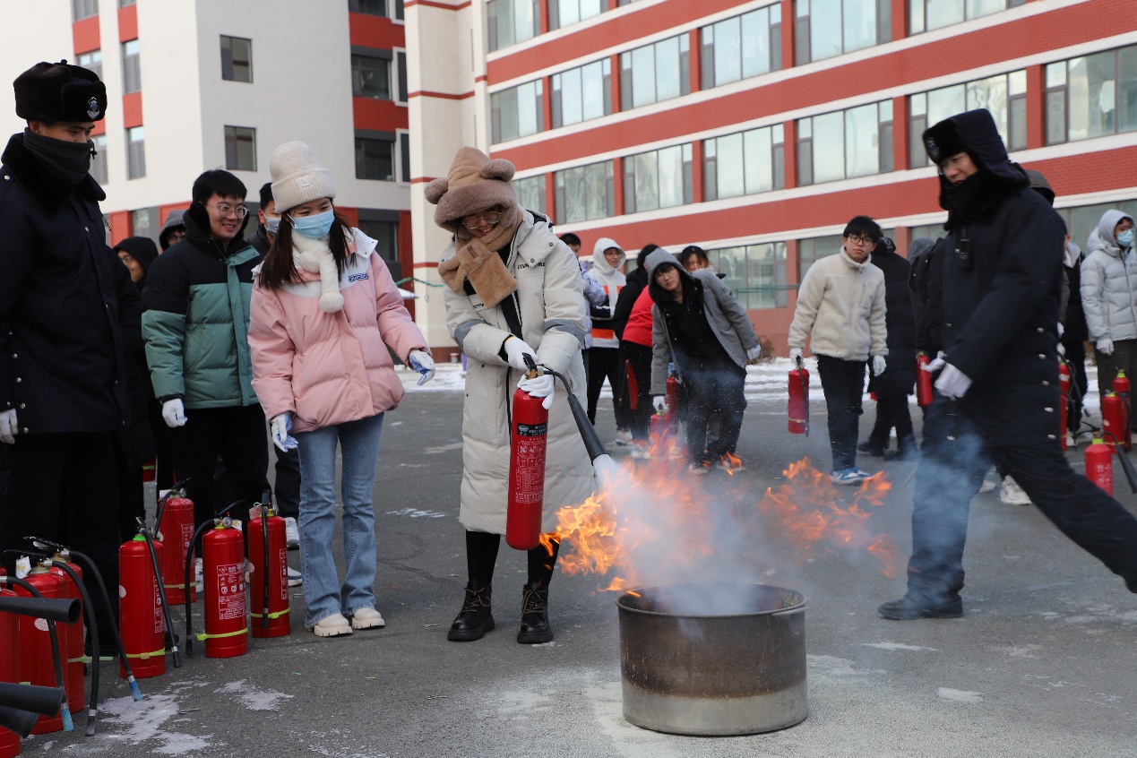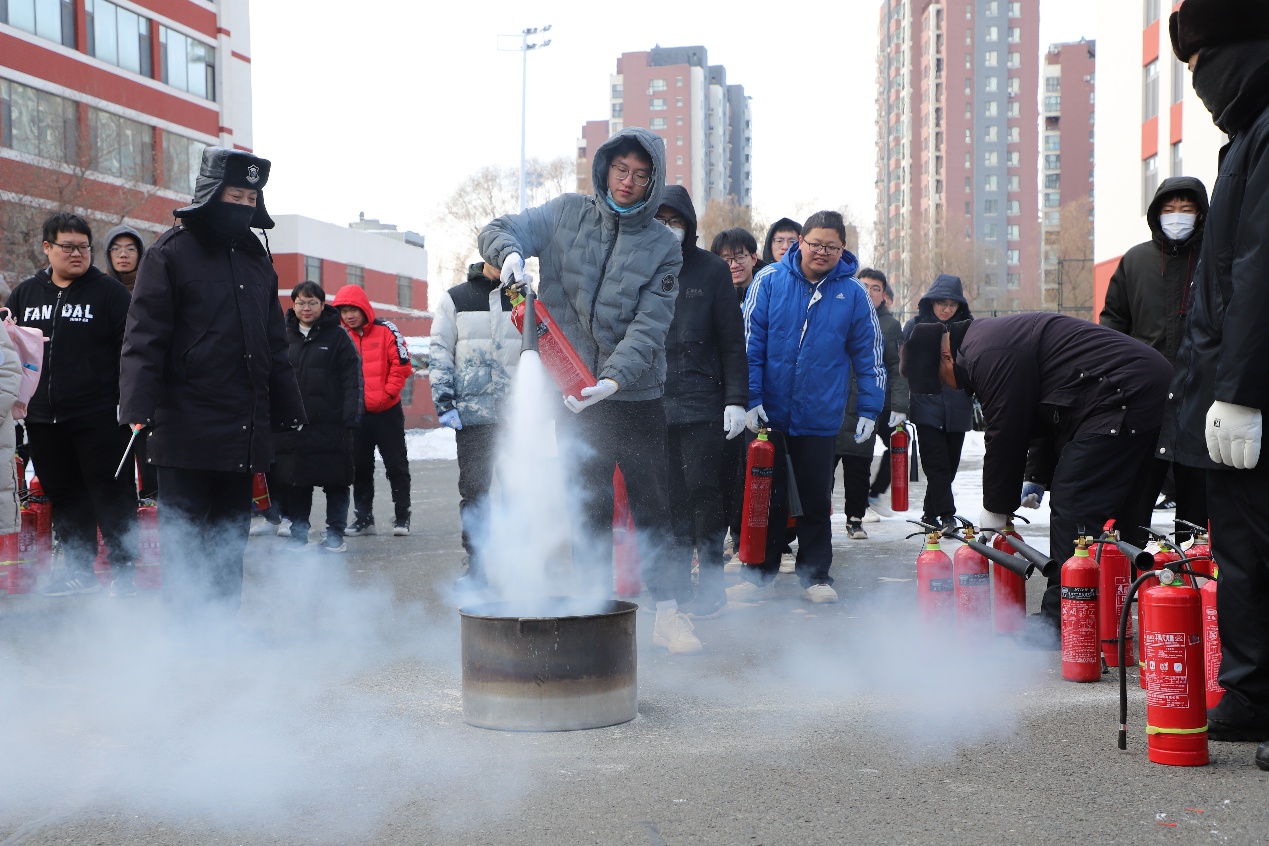 12时20分研究生园区所有公寓楼同时响起火警警报,拉开了疏散演练开始的序幕,全体工作人员按照预定的演练预案迅速进入各自岗位,200余名学生从所处位置的最近安全出口迅速有序离开公寓楼,到达安全地点。随后,参演人员在公寓C座门前集中接受了消防器材使用方法及注意事项等知识培训,并进行了灭火实战演练。