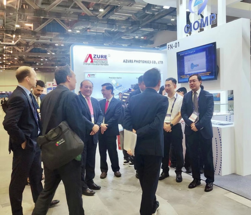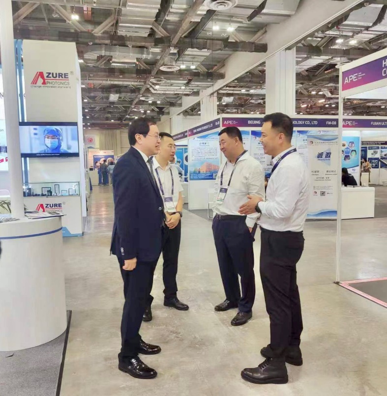 LUX Photonics Consortium主席Prof.Tjin Swee Chuan及IEEE Photonics Society主席Perry Shum莅临所展位参观指导